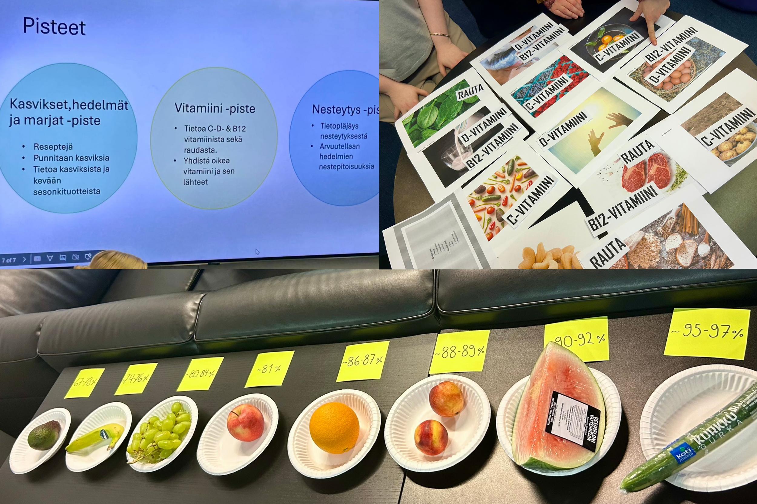 In Kannelmäki, the topic was nutrition and relaxation. We discussed healthy eating habits, hydration and vitamins. There were also fun activities with fruits and vegetables. After that, we practiced relaxation through breathing and light exercises. One important message stayed with us: “I am important. My health is important”.