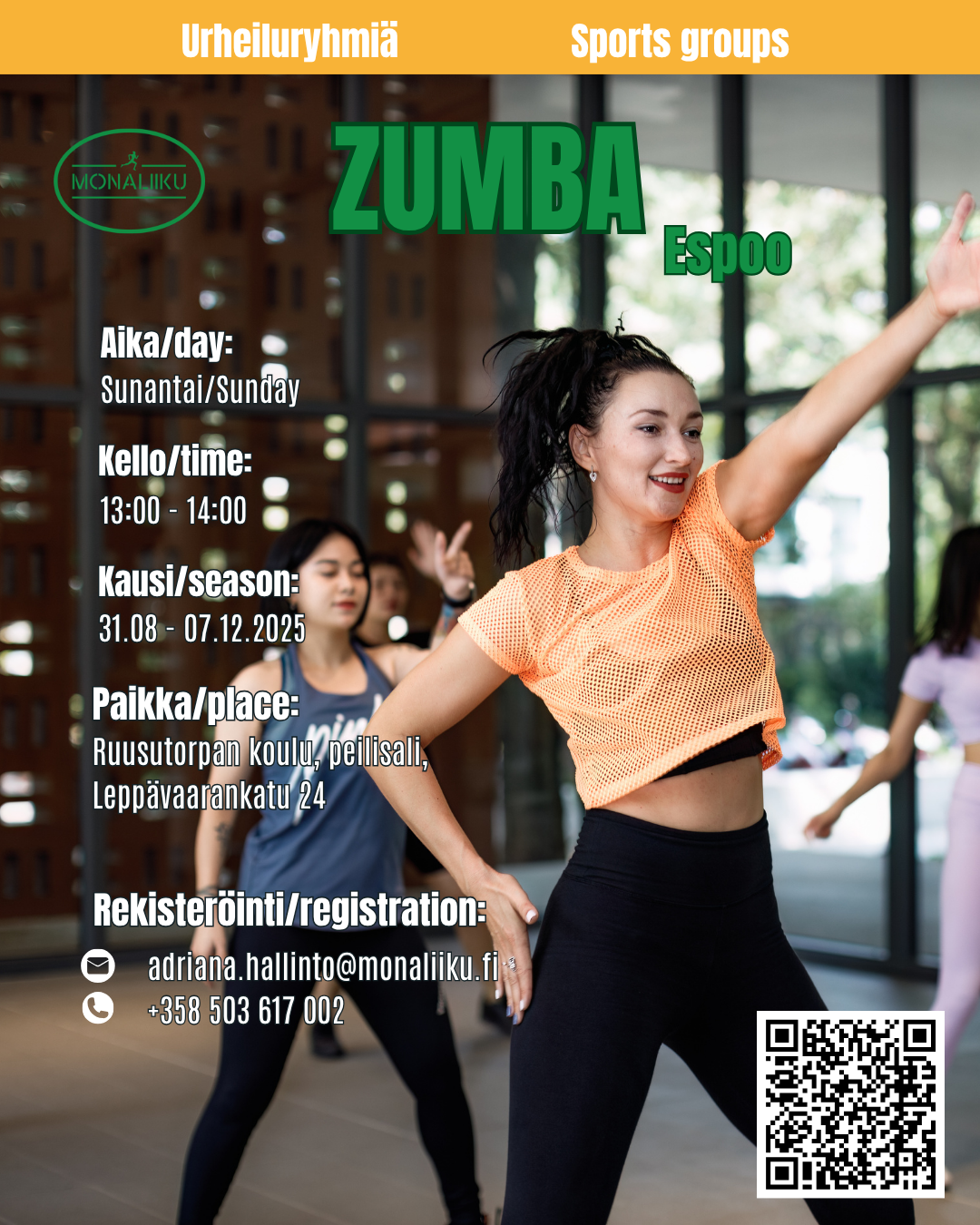 Zumba on kunto-ohjelma, joka sisältää kardioharjoituksia latinalaisvaikutteisen musiikin tahdissa.