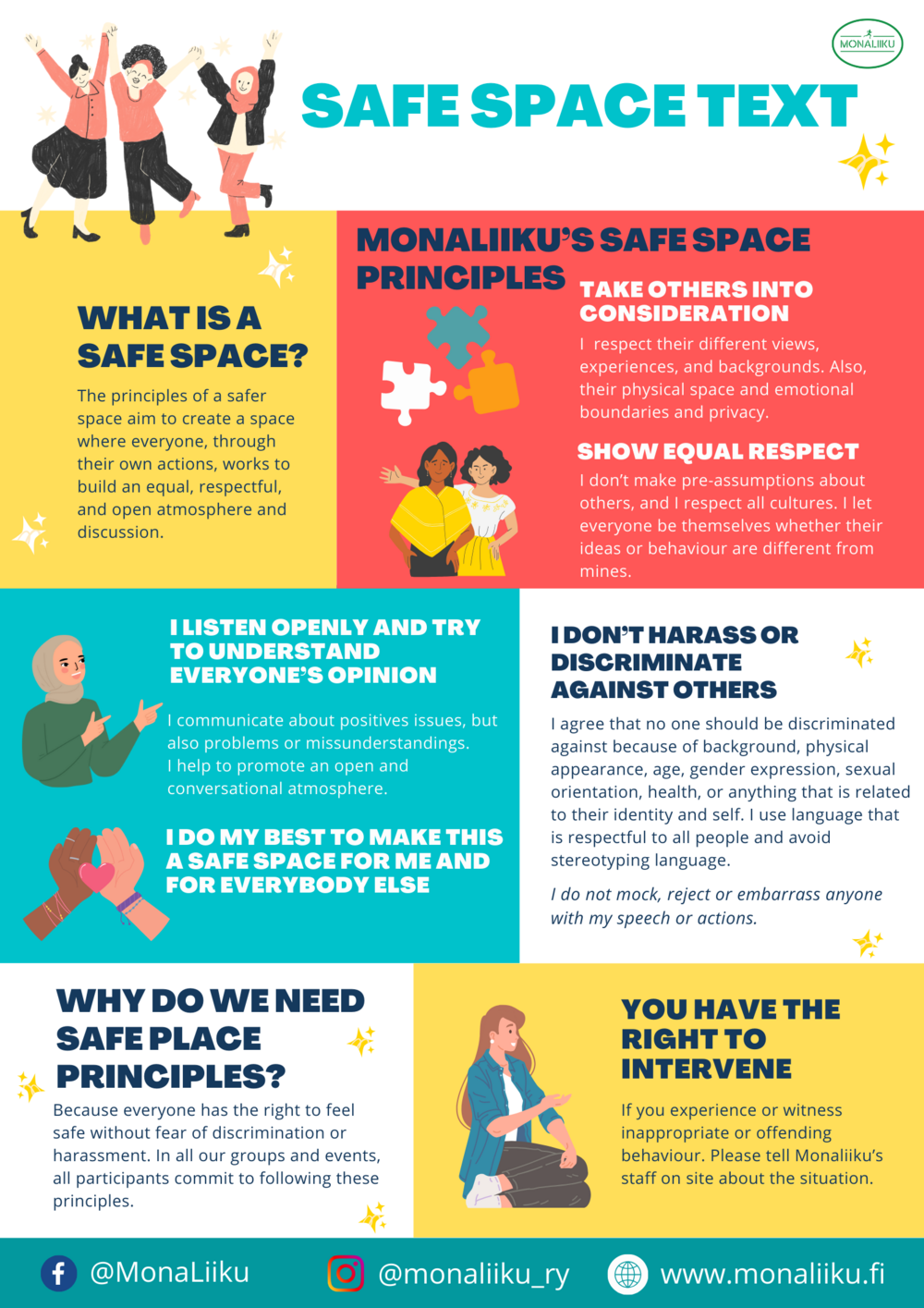 You can find Monaliiku's safe space text in Somali, Finnish, English and Arabic.